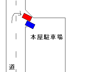 本屋(おーはしるい 夫婦な生活(3巻)購入)の駐車場からでようとして、 本屋駐車場出入口のところで車が途切れるのをまっていると、