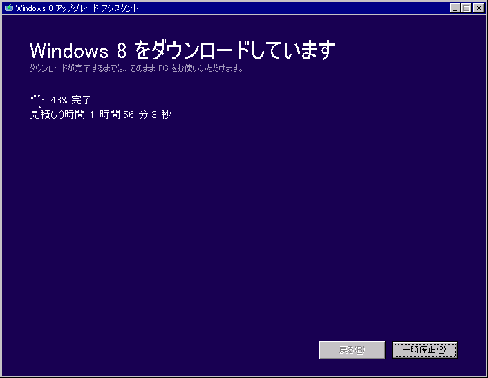 をクリックし、Windows8アップグレードアシスタントを実行する。